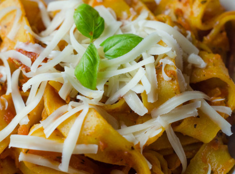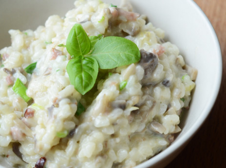 Makaron penne z boczkiem, pieczarkami i pomidorami koktajlowymi