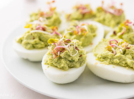 Jajka w sosie pomidorowym z soczewicą i jarmużem