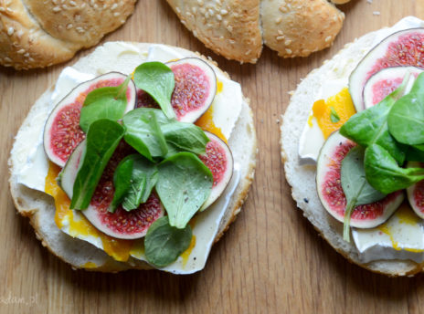 Bułka z serem pleśniowym, powidłami dyniowymi, figami i roszponką